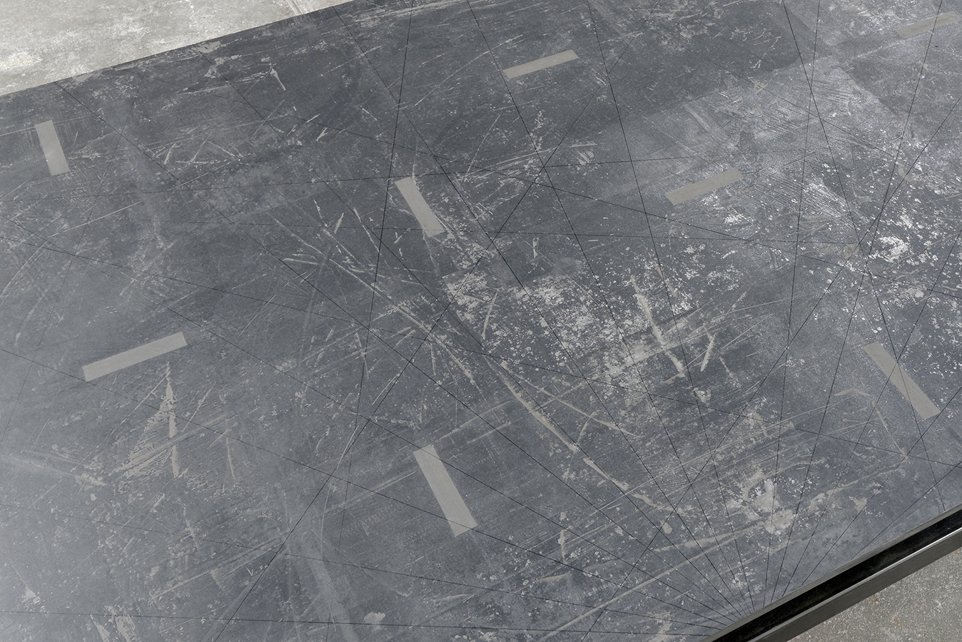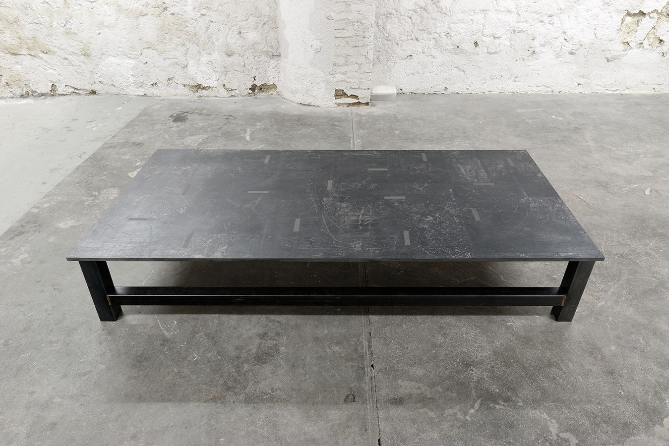 One Flat Thing Acier, médium, métalis, sérigraphies, encre. 200x100x30cm 2015