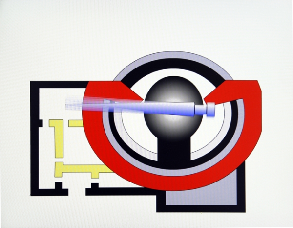 Cette série d’animations a été fabriquée à partir de plan de Bunkers et Blockhaus. Elle les utilise comme des moyens composition jouant grâce à des aplats colorés des vides et des pleins que propose ce type d’architecture. L’animation est pensée en fonction de l’utilité première du bunker choisi et dans le but de les transformer en capacité de production. Leurs mouvements jouent sur différents principes : absorption, circulation, expulsion, transformation, production, rouage, balancement. Ces machines célibataires puisent leur graphisme dans les premiers jeux vidéos.