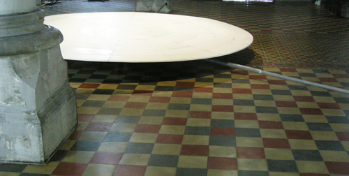 Intrusive et mécanique, elle ne dévoile que peu ses attraits et laisse voir son plateau couleur ivoire dont la texture imite la pierre. Ce plateau divisé en quarts puis en huitième de cercle rappelle à la fois la cible et la rosace décorative extraite de tout support et devient en quelque sorte une zone autonome.
