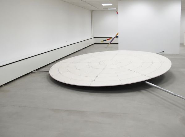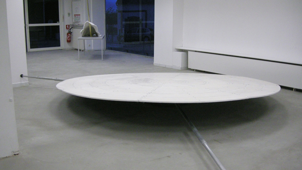Phaéton est un vaisseau, une sorte de prototype pour une plateforme disponible. Cette sculpture propose un espace de suspension, un espace en dehors de. Elle se pose par tension dans le lieu qui l’accueille. Elle s’impose à l’espace, tente de s’y caler et le modifie.